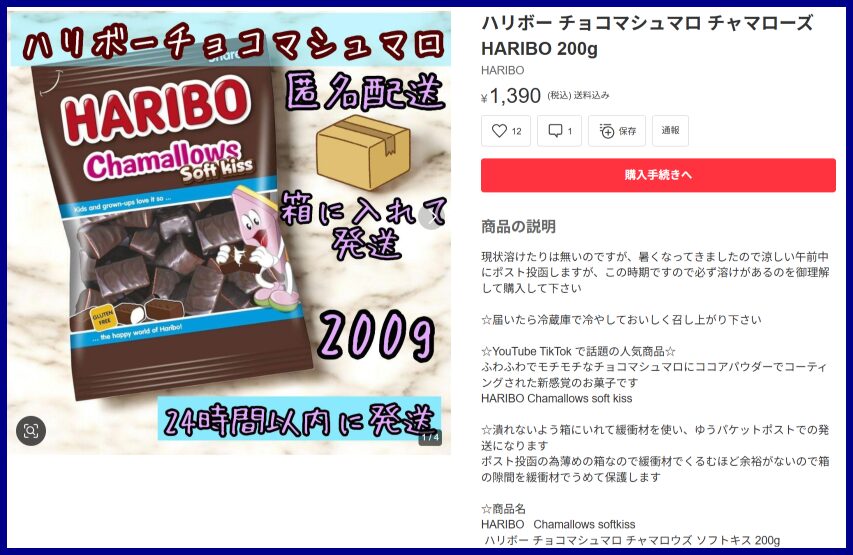 メルカリにもハリボーチョコマシュマロは売っていました。